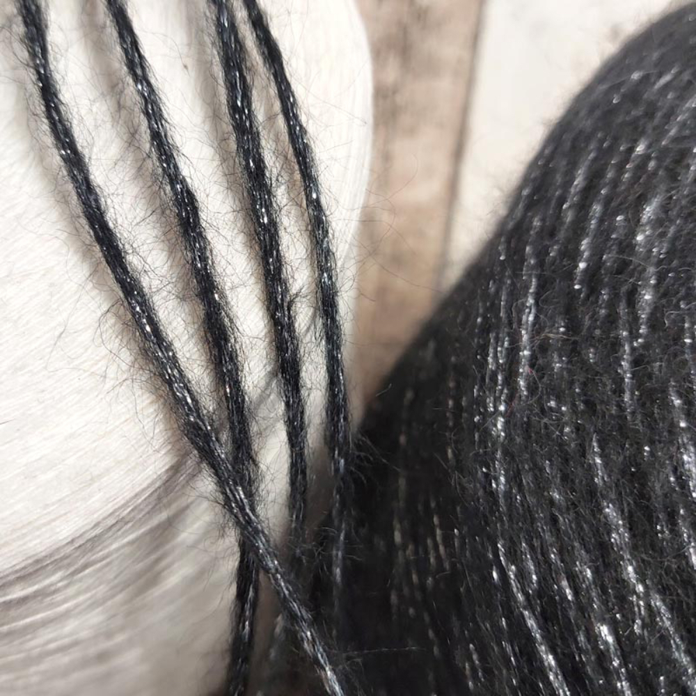 Состав: 60% бэби альпака, 40% люрекс