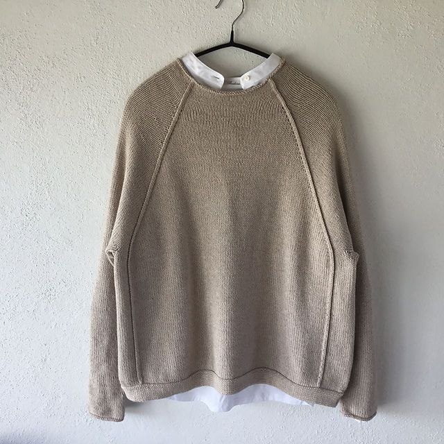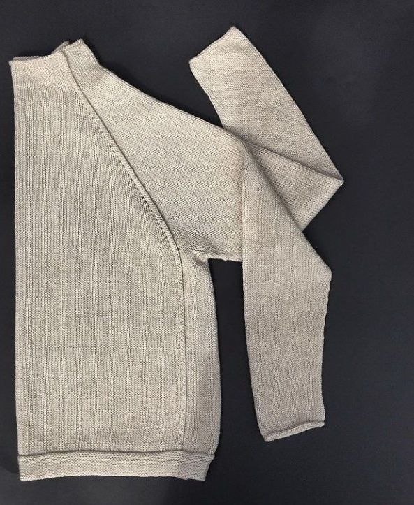 Джемпер "Aside" вяжется сверху вниз лицевой гладью – ничего сложного в вязании гладью и регланом нет, но главная изюминка: отделка "швов". Нижний край выполнен двойной планкой, а манжеты рукавов отделаны тонким шнурком.