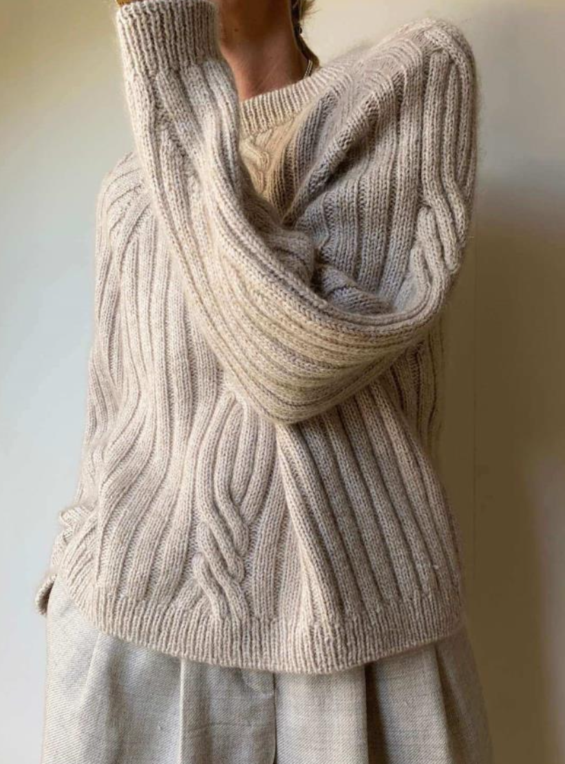 "Loops" - это классический джемер реглан в резинку с элегантными деталями в виде кос и интересными убавками на рукавах. Джемпер вяжется по кругу, сверху вниз. После того, как вы закончите планку горловины, вы будете работать укороченными рядами, чтобы сформировать вырез горловины, и продолжите резинкой, делая прибавки реглана на кокетке и косы на теле и рукавах. Рукава формируются помощью последовательности убавок и заканчиваются резинкой.