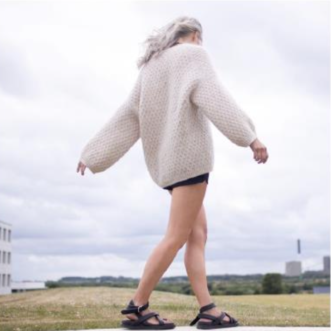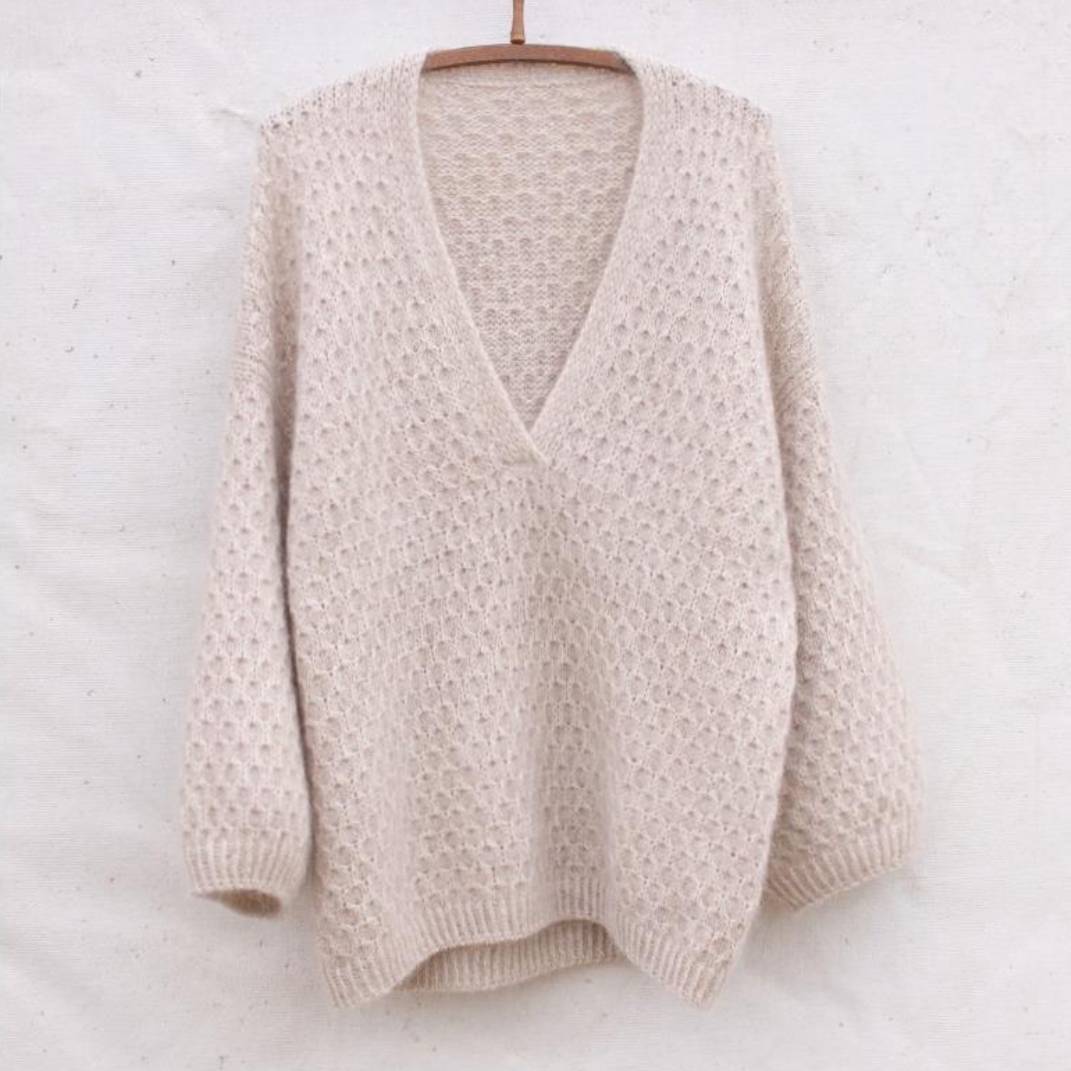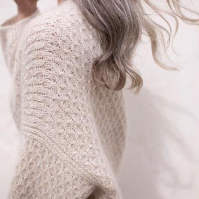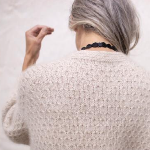 Vent - это мягкий и пушистый кардиган с простым и изысканным узором в виде сот. Джемпер связан сверху вниз. Сначала вяжут край горловины спинки, затем задняя часть кокетки вяжется вниз от горловины спинки. После этого подбирают петли и вяжут вдоль плечевых скосов спинки для секций кокетки переда. Спинку и перед соединяют в нижней части пройм, а тело вяжут по кругу до низа. Наконец, петли поднимают вдоль пройм для рукавов, и рукава вяжут по кругу до манжет.