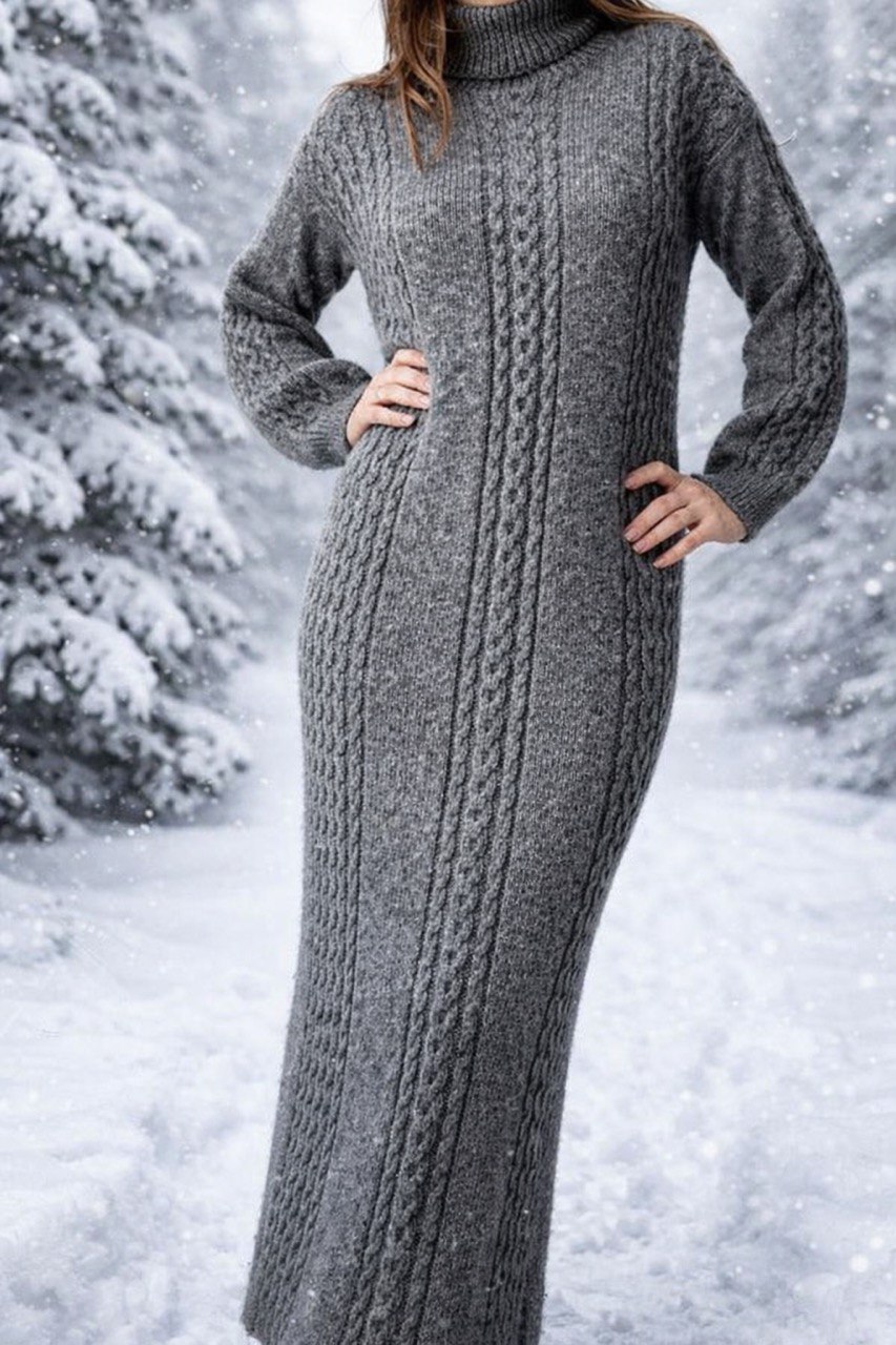 Элегантное тёплое платье идеально подойдет для холодного сезона. Прямой силуэт подчёркивает фигуру, а вертикальные рельефы и выразительные косы визуально стройнят и добавляют образу благородства. Высокий ворот-гольф мягко окутывает шею, создавая ощущение уюта и защищённости от холода. Лаконичные рукава и чистые линии делают модель универсальной. Платье одинаково уместно и для повседневных образов, и для стильных зимних выходов.