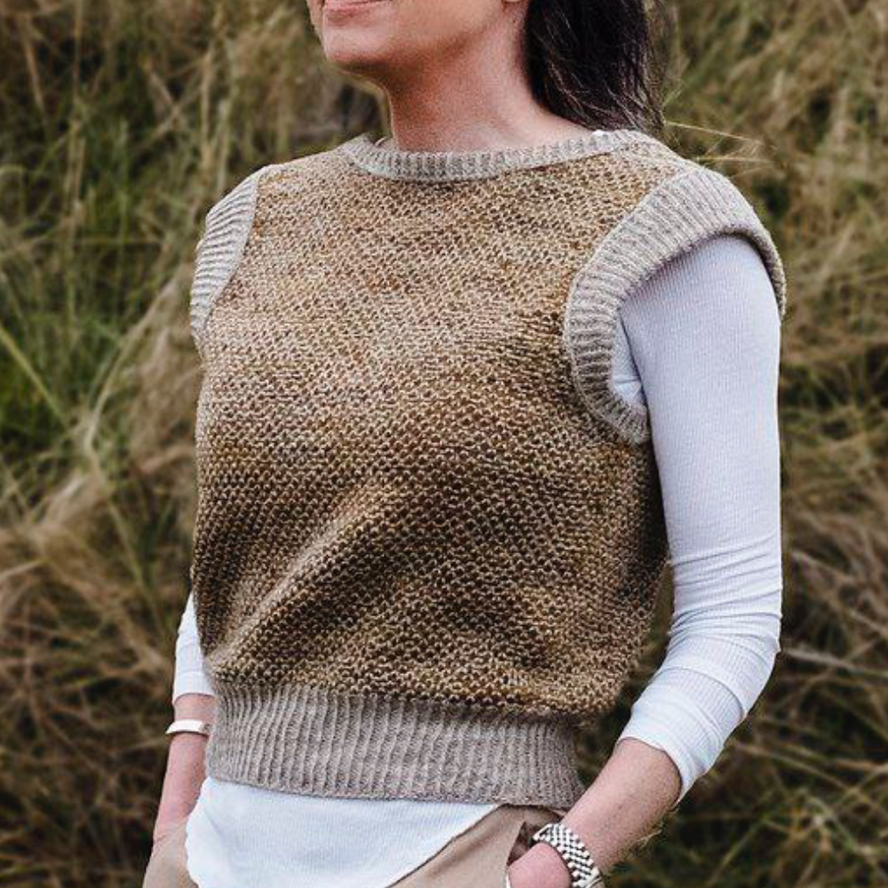Самая яркая особенность жилета Hornby в том, что его можно носить не только на лицо или наизнанку, но и задом наперед. Изделие связано двухцветным узором, который великолепно смотрится с обеих сторон, и отделано планками из резинки со скрещенными петлями. В описании приводится подробная инструкция по технике отделки, которая позволит изделию выглядеть аккуратно с обеих сторон.