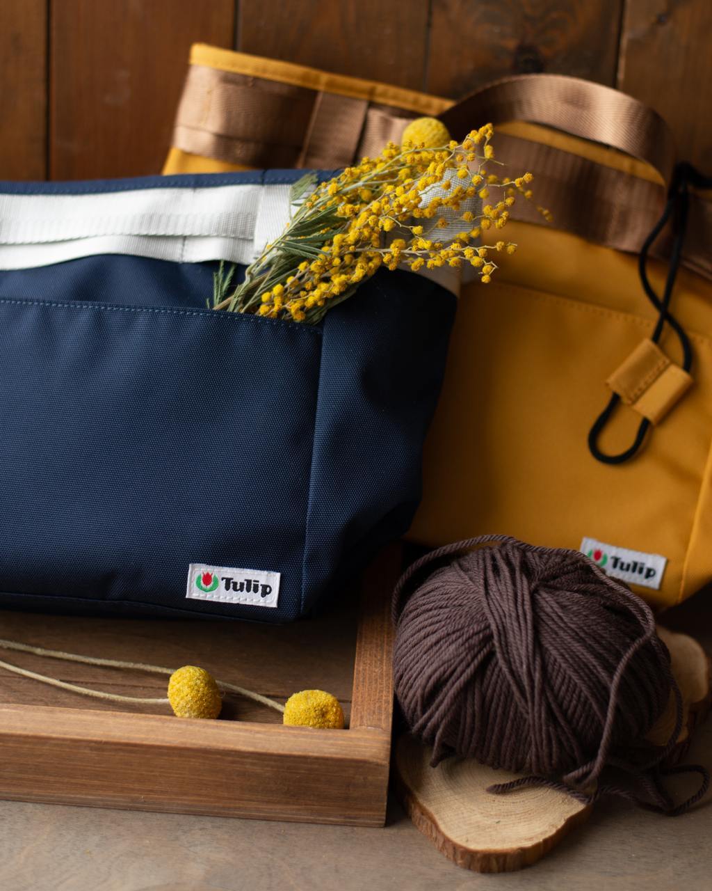 Сумка + мешочек для пряжи Tulip Amicolle. Размеры: сумка 24 х 22 х 14.5 см, мешочек 20 х 20 х 12 см. Материал: 100% полиэстер. Цвет: желтый.