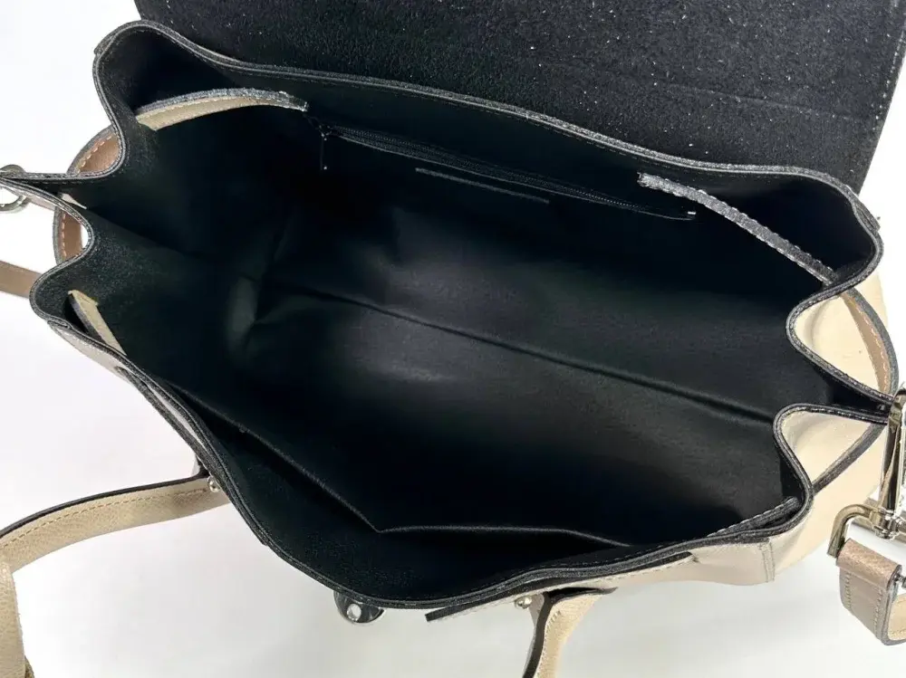 Внутри одно отделение, плюс кармашки, один на молнии.