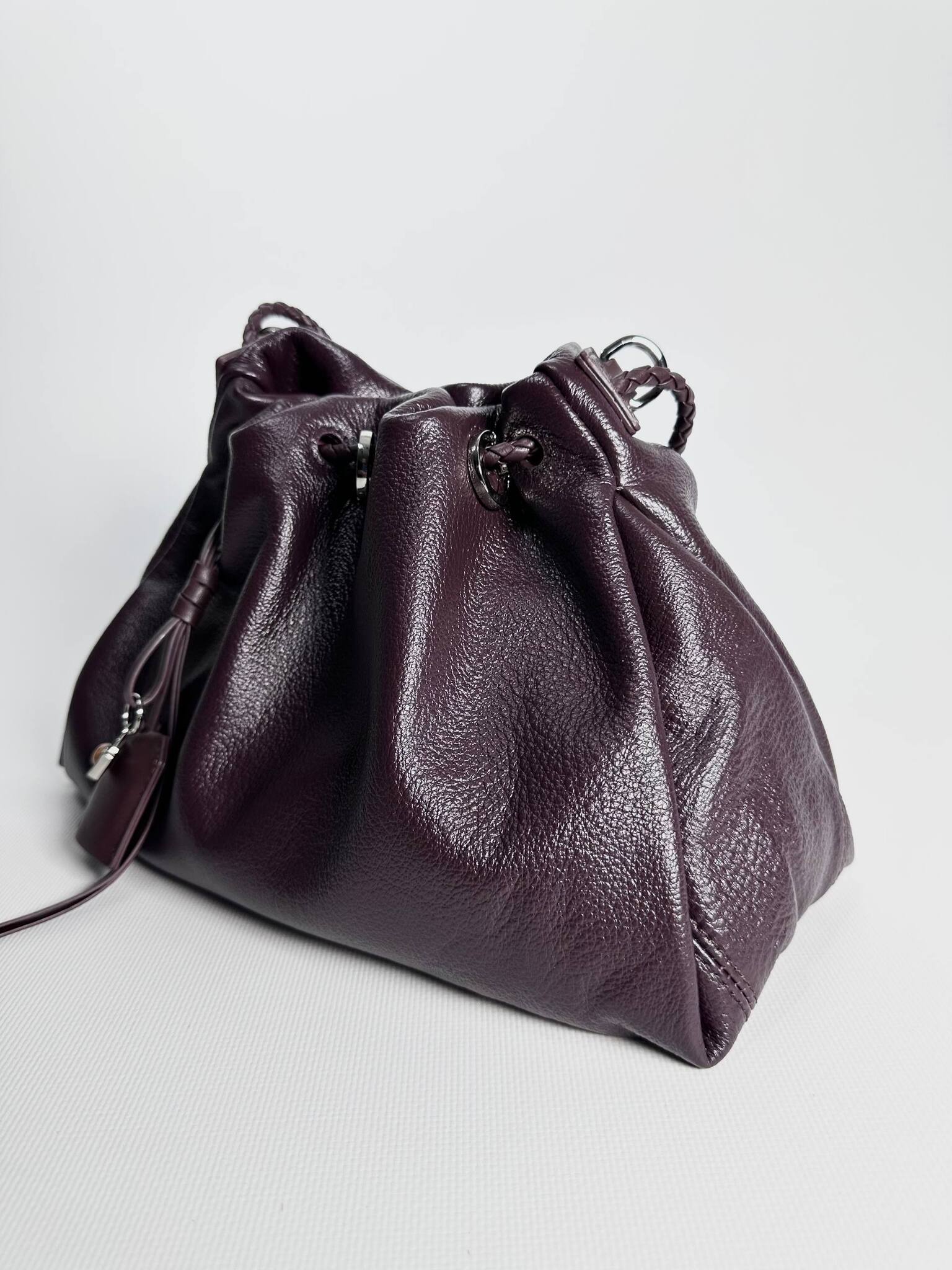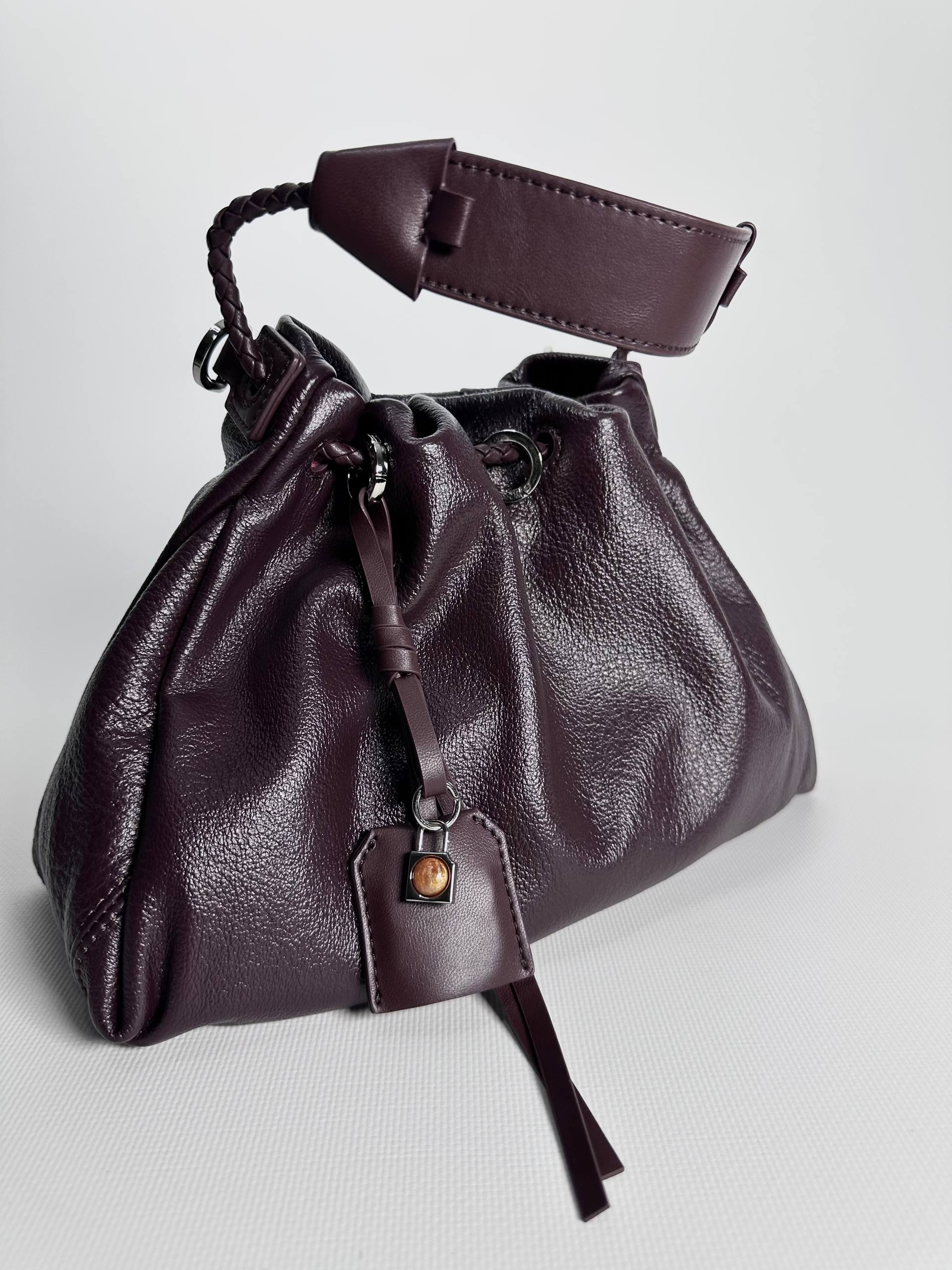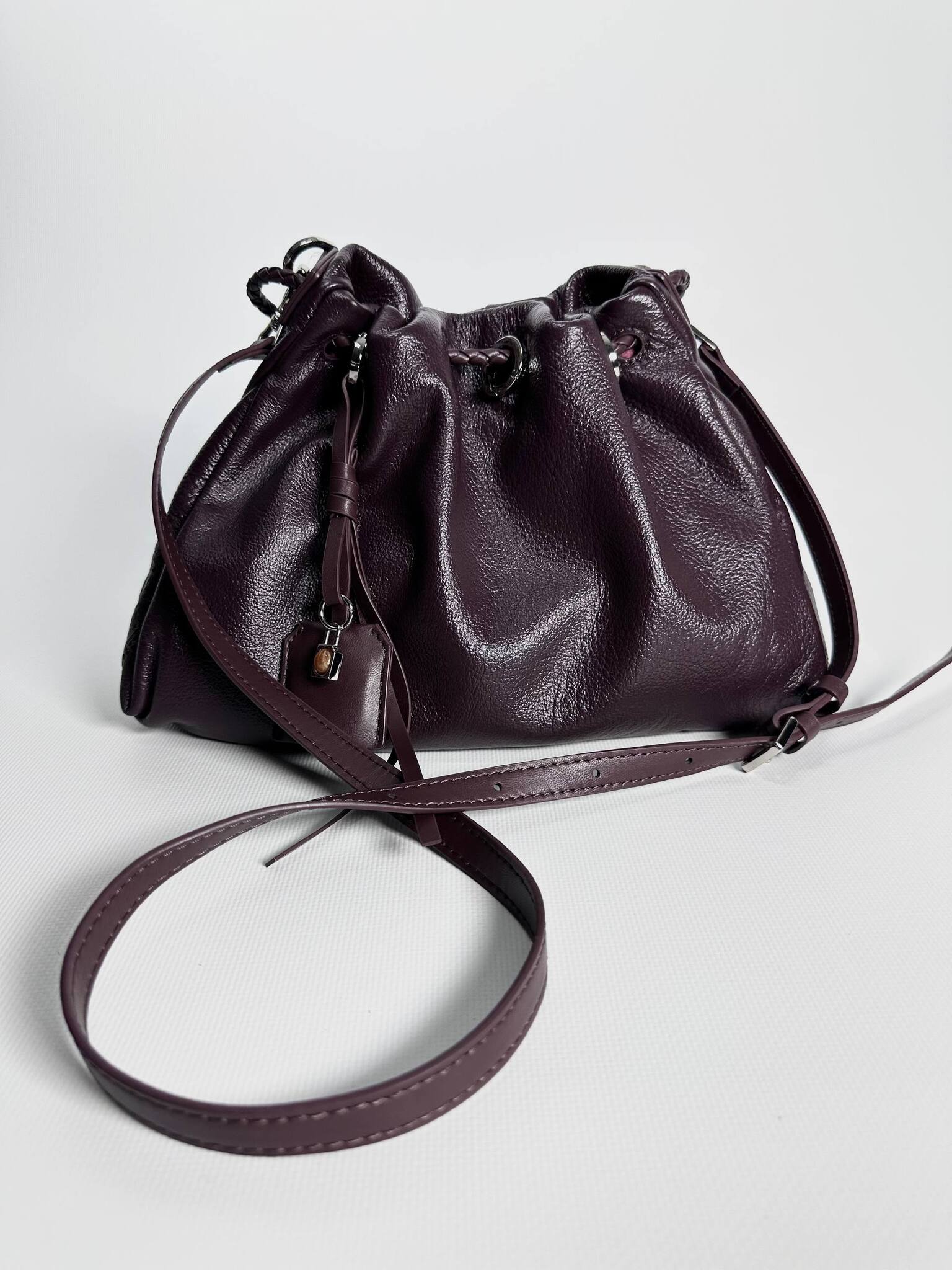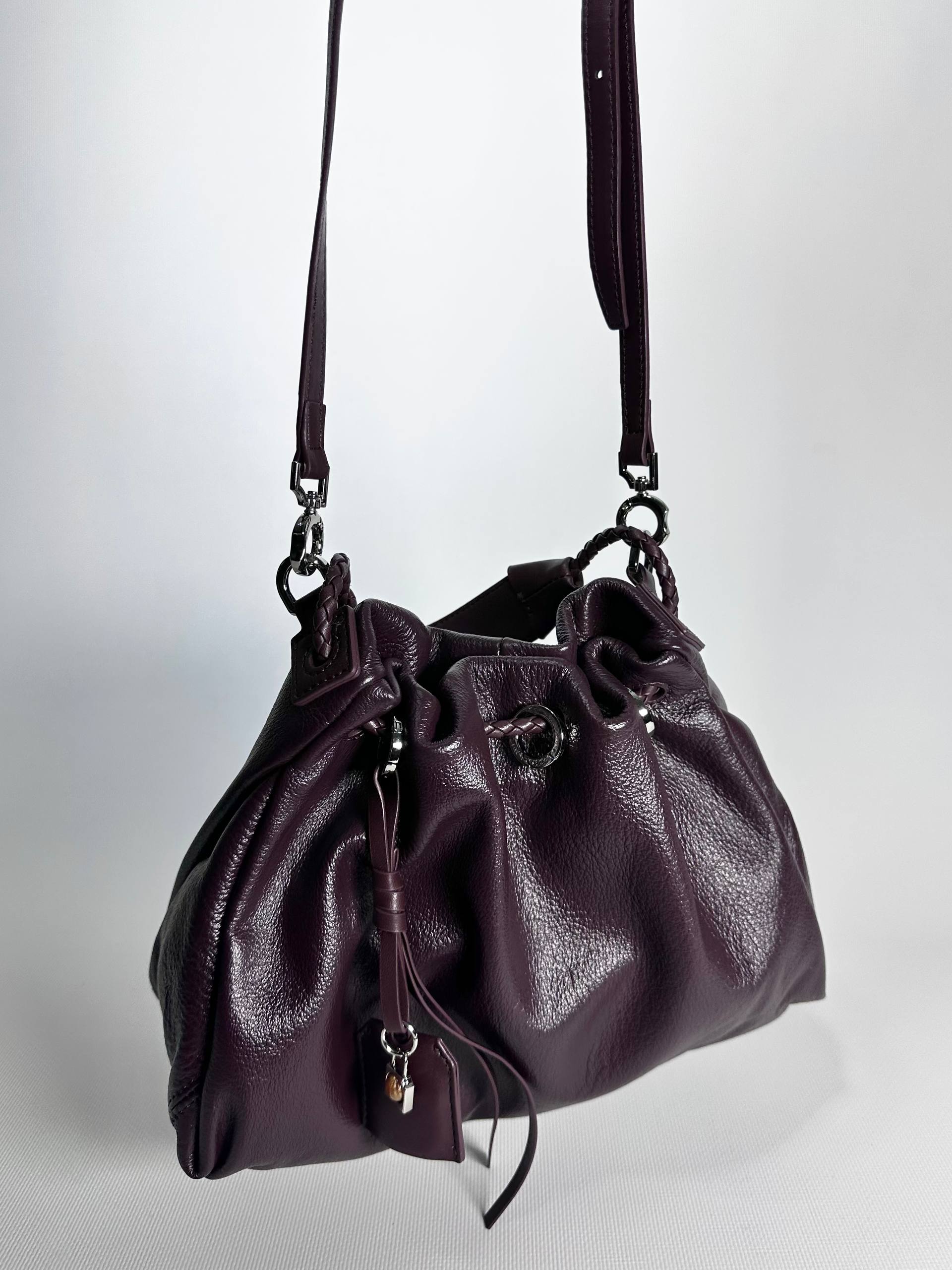 Сумка-кисет выполнена из мягчайшей натуральной телячьей кожи. Закрывается сумка при помощи магнита. Внутри хлопковая плотная подкладка и боковые карманы. Размер: 28 х 20 х 10 см. Высота ручки - 19 см. Длина ремешка - 120 см.