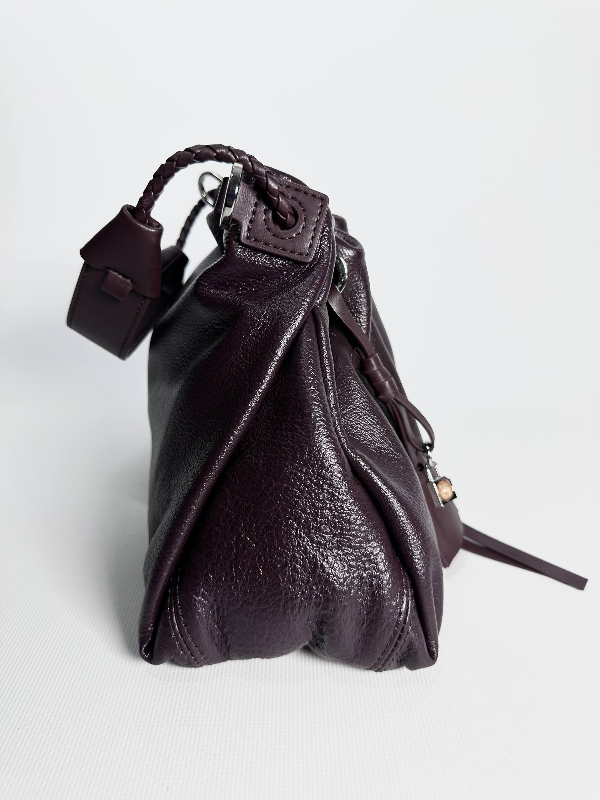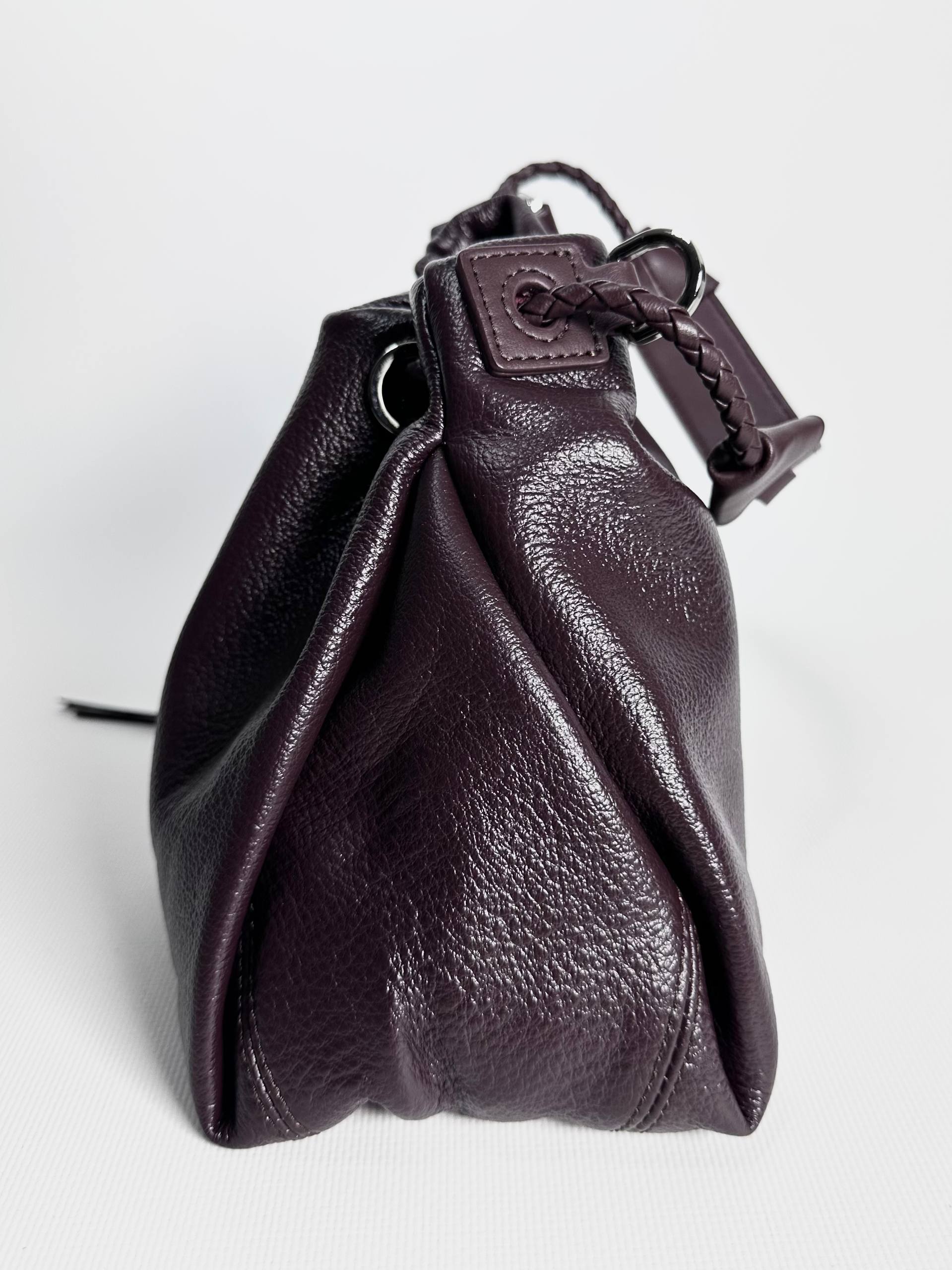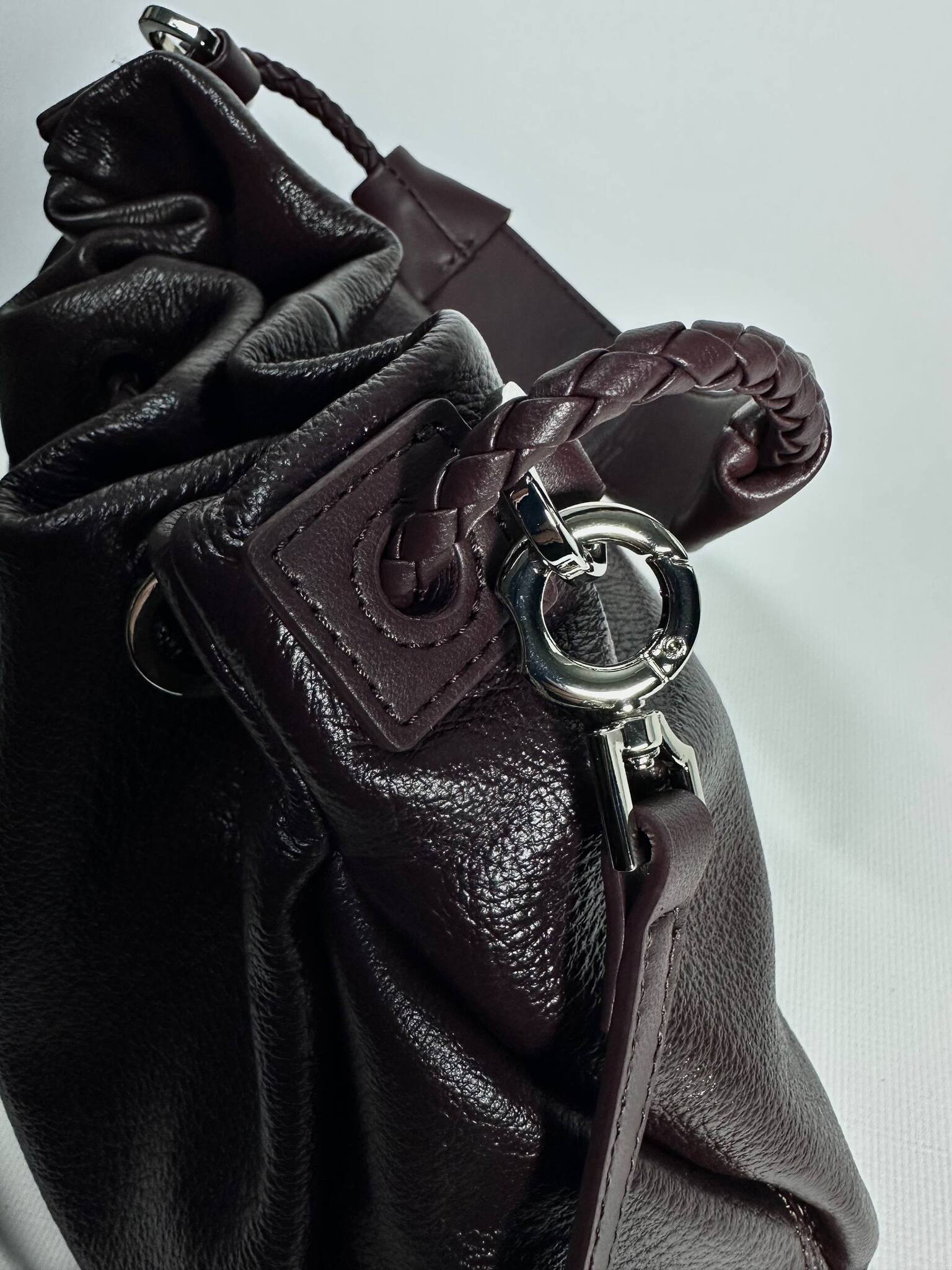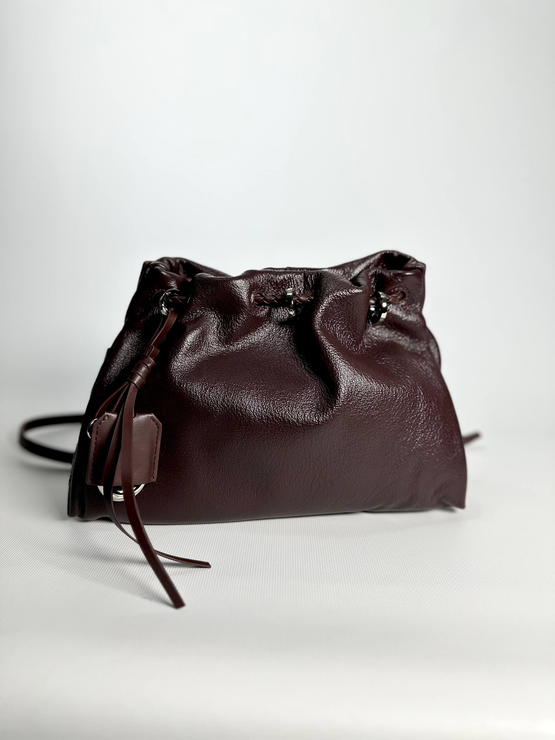 Сумка-кисет выполнена из мягчайшей натуральной телячьей кожи. Закрывается сумка при помощи магнита. Внутри хлопковая плотная подкладка и боковые карманы. Размер: 28 х 20 х 10 см. Высота ручки - 19 см. Длина ремешка - 120 см.