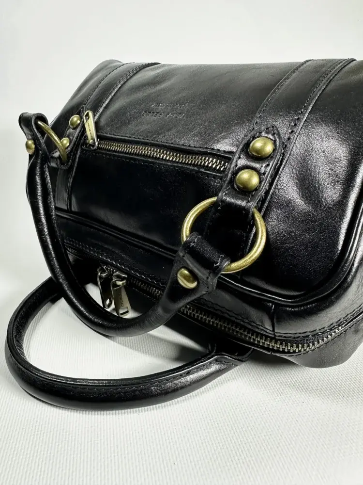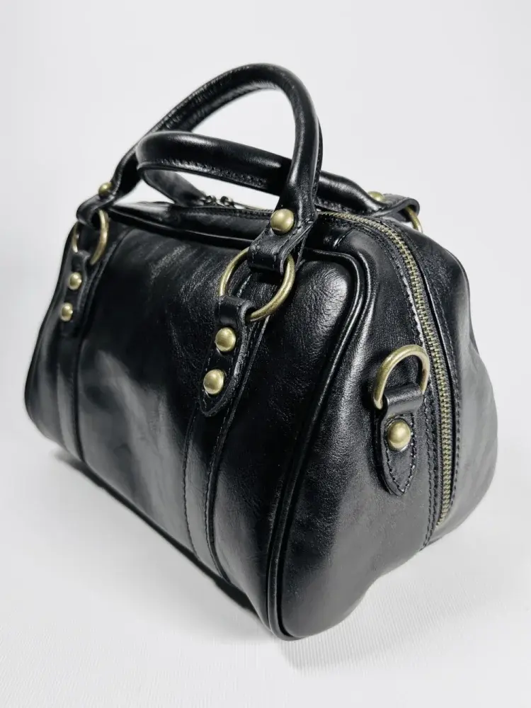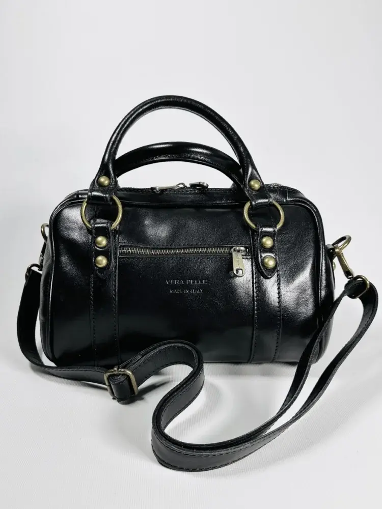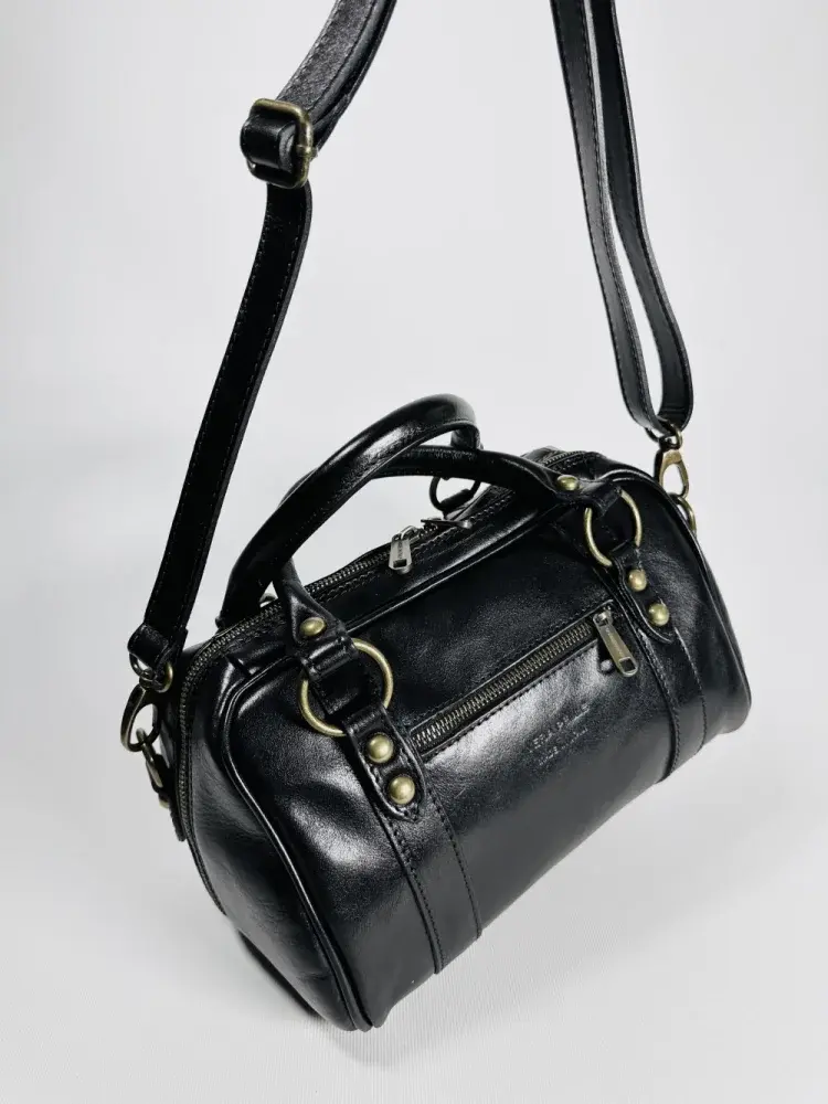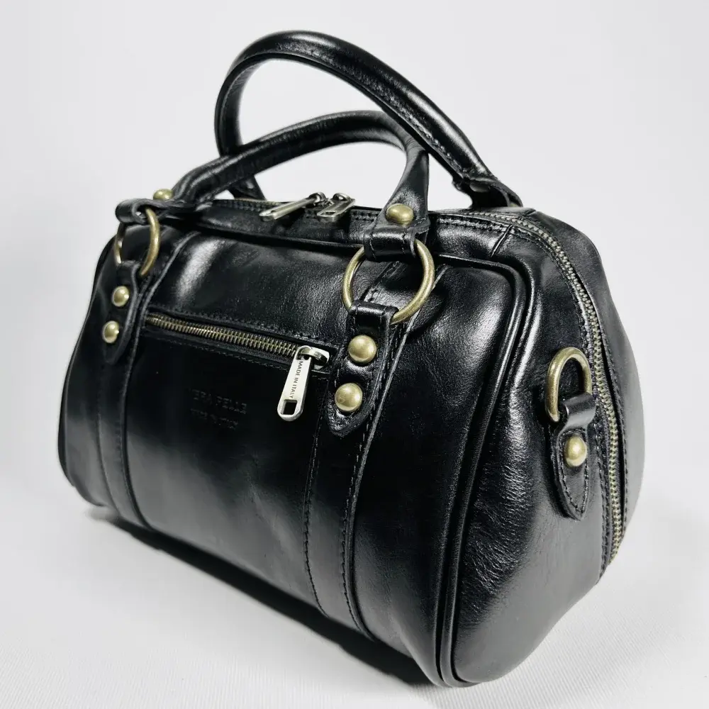 Женская сумка-саквояж из натуральной кожи черного цвета