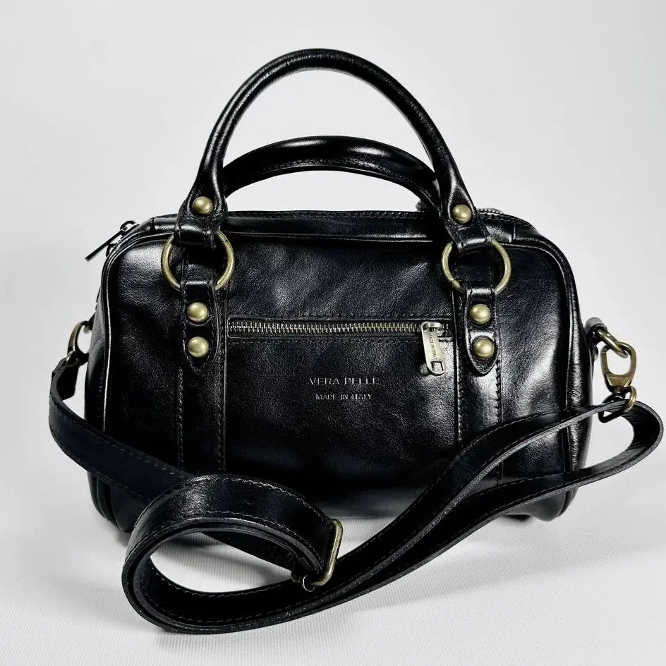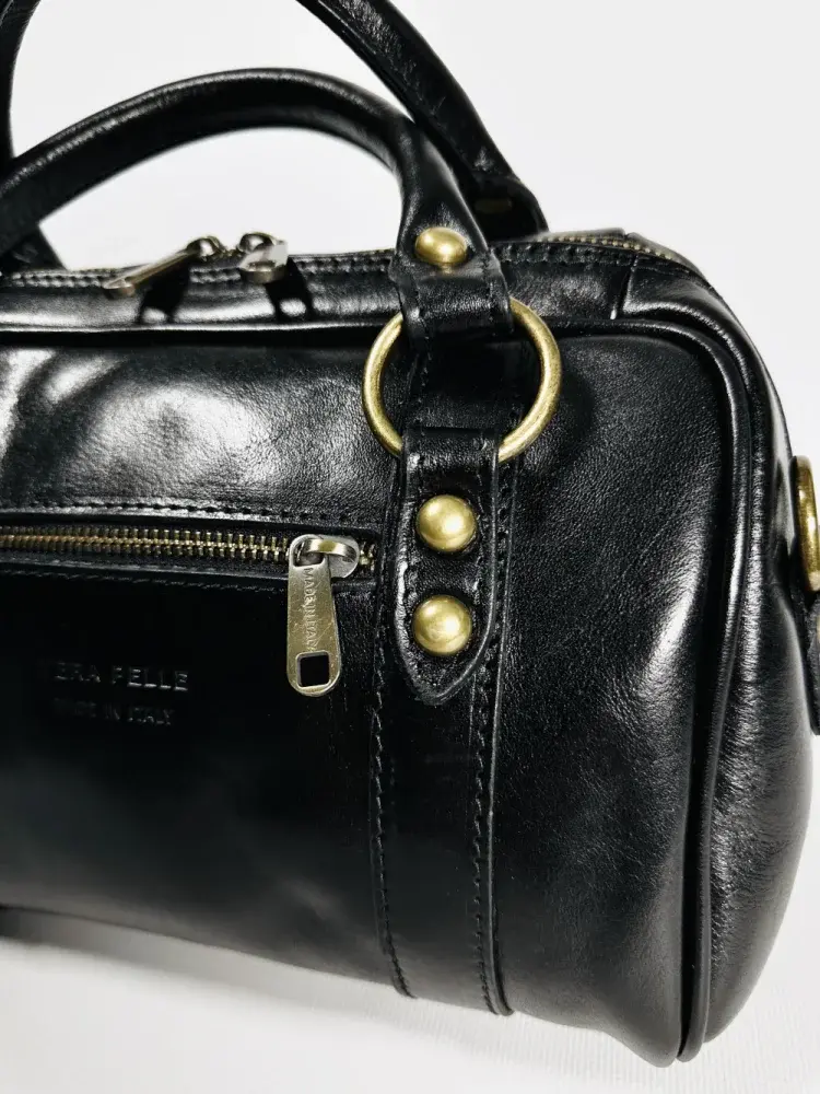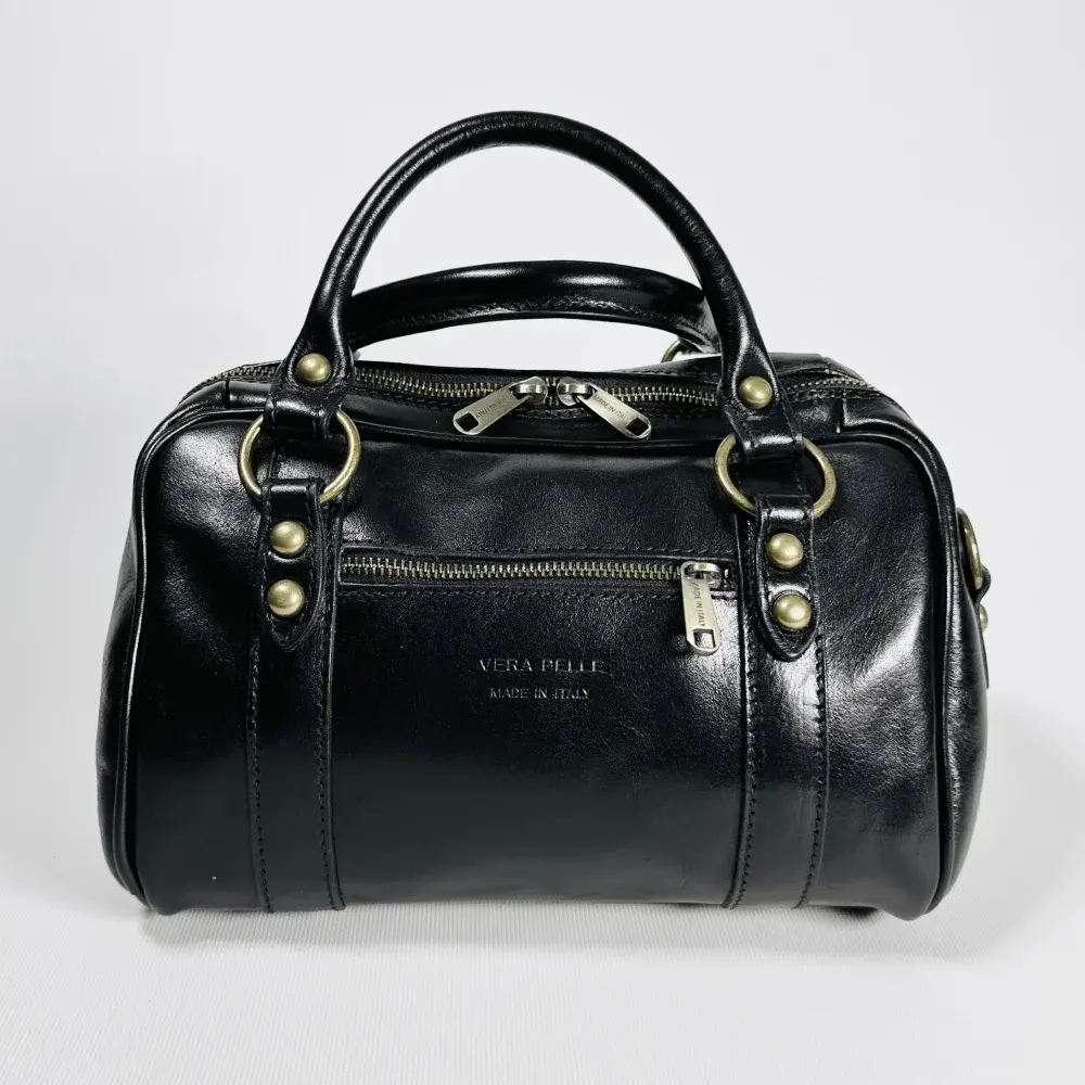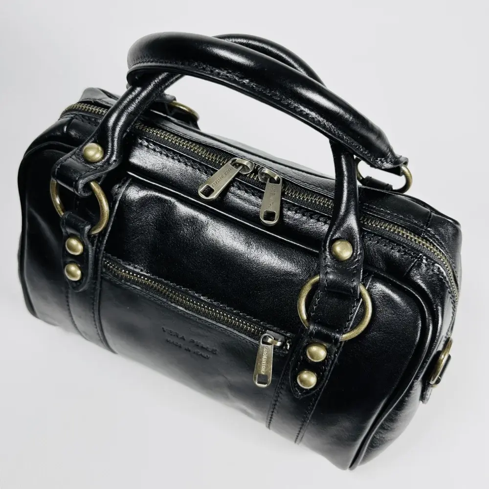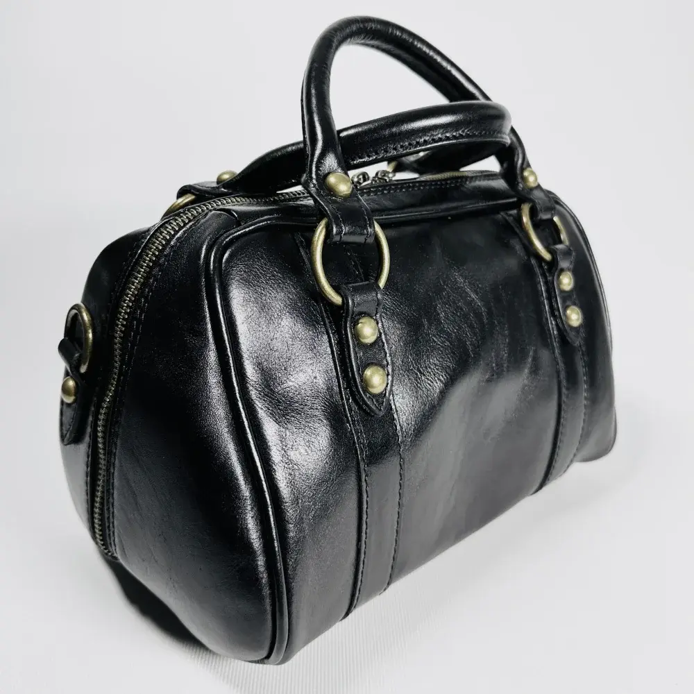 Женская сумка-саквояж из натуральной кожи черного цвета