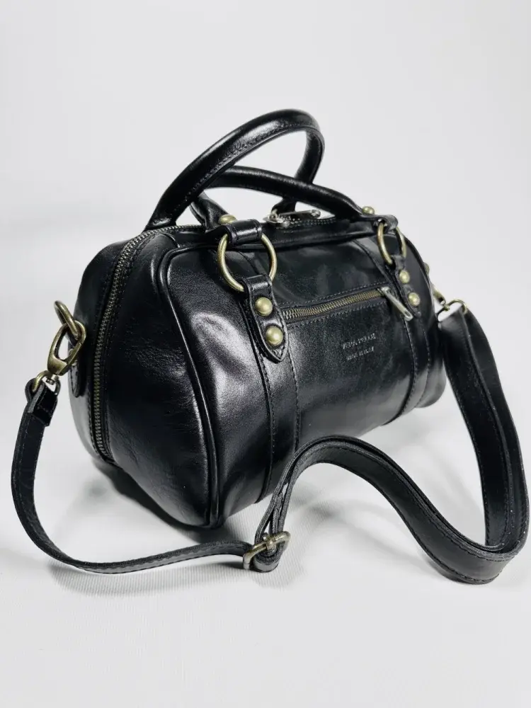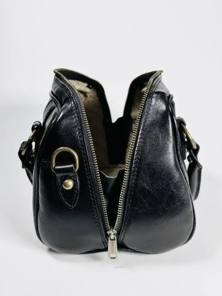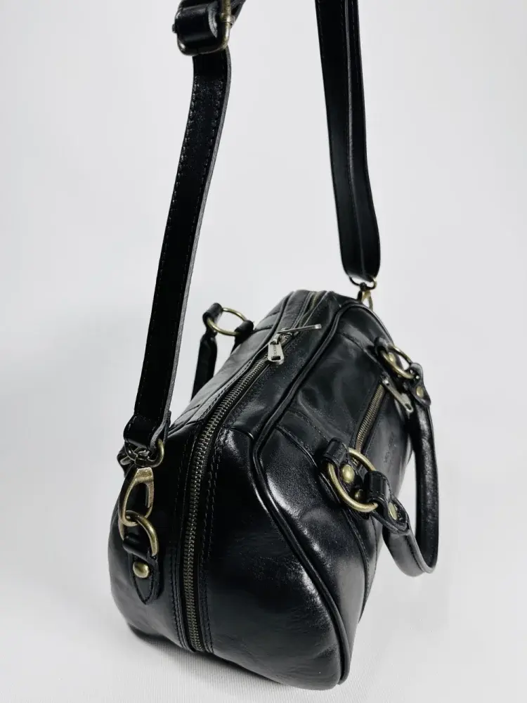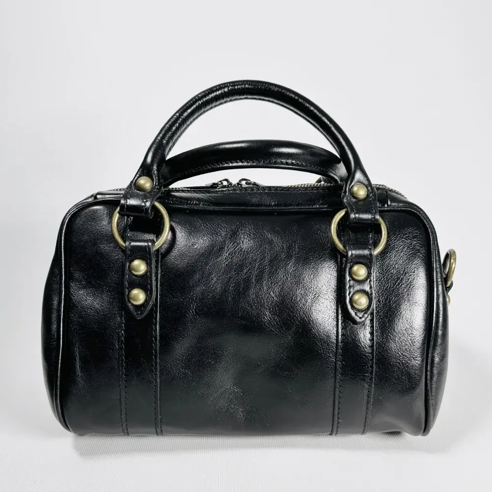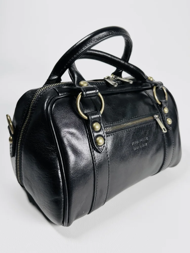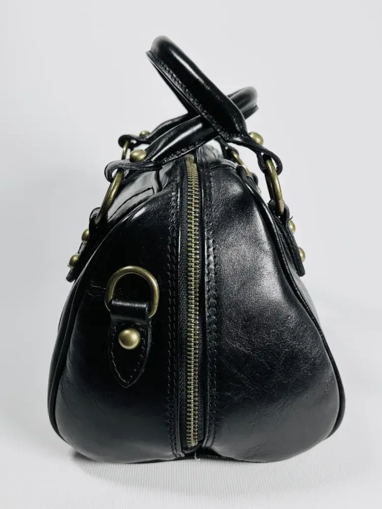 Женская сумка-саквояж из натуральной кожи черного цвета